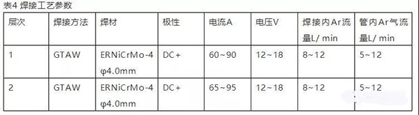 3. 焊接材料:焊絲采用ERNiCrMo-4φ2.0,其化學(xué)成分和機(jī)械性能見表2、表3,保護(hù)
