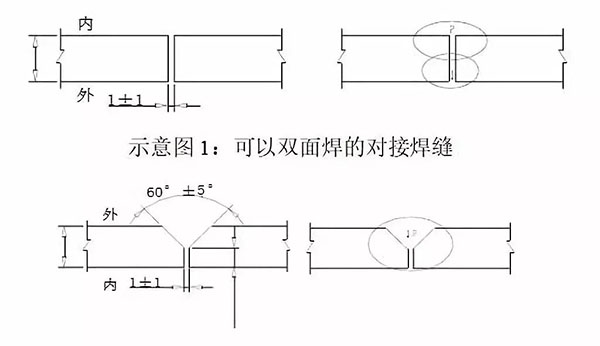 板厚2.5~3.0mm雙面焊可以不開坡口,但只能單面焊時,隔熱管托可以將坡口間隙放大到1~2mm或開坡口焊接;