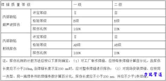 焊縫等級分類及無損檢測要求
