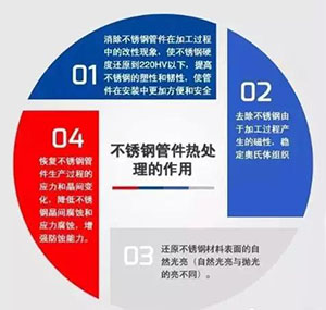 2、恢復不銹鋼管件生產過程的應力和晶間變化,降低不銹鋼晶間腐蝕和應力腐蝕,增強防蝕能力。