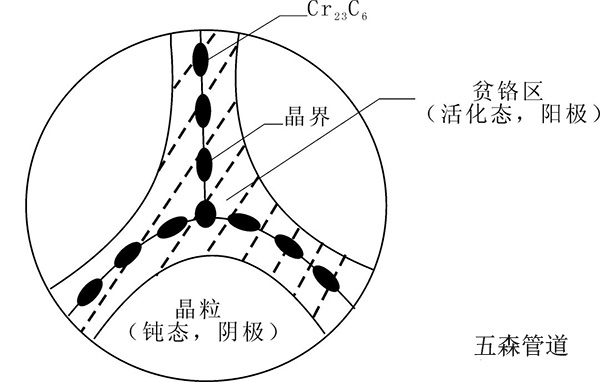 奧氏體不銹鋼如果發(fā)生敏化,即使在很普通的電化學(xué)環(huán)境也會(huì)發(fā)生嚴(yán)重的晶間腐蝕。