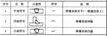 輔助符號是表示焊縫表面形狀特征的符號,見表1—5。應用示例見表1—6。