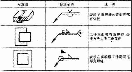 補充符號是為了補充說明焊縫的某些特征而采用的符號,見表1—7。應用示例見表1—8。