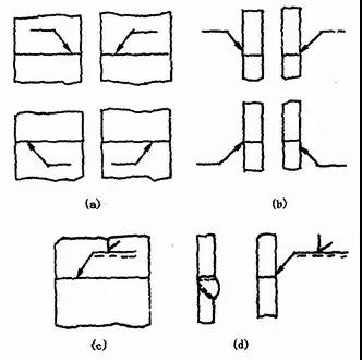 (a)焊縫在箭頭側 (b)焊縫在非箭頭側