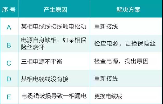 三相電機在運轉時必須由三根電纜線提供驅動電源,才能達到三相平衡運轉;如果由兩根電源線提供電源也能夠運轉,但運轉時間加長會導致電機因缺相燒毀電機。判別電機缺相方法: