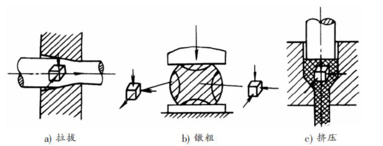 圖3 幾種鍛壓方法的應(yīng)力狀態(tài)