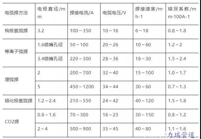 1)隨著電弧焊焊接電流增加,作用在焊件上的電弧力增加,電弧對焊件的熱輸入增加,熱源位置下移,有利于熱量向熔池深度方向傳導,使熔深增大。熔深與焊接電流近似成正比關系,即焊縫熔深H約等于Km×I。式中Km為熔深系數(焊接電流增加100A導致隔熱管托焊縫熔深增加的毫米數),它與電弧焊的方法、焊絲直徑、電流種類等有關見表1-1