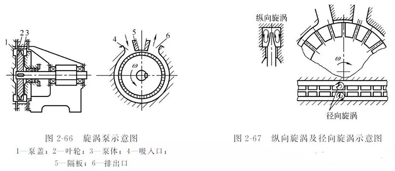 隔熱管托及旋渦泵的結構主要包括葉輪(外緣上帶有徑向葉片的圓盤)、泵體、泵蓋以及由泵蓋、泵體和葉輪組成的環形流道,如圖2-66所示。