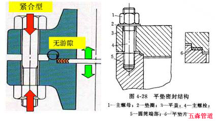平墊密封結(jié)構(gòu)簡單、加工方便、使用成熟,在直徑小、壓力不太高的場合密封可靠。當(dāng)結(jié)構(gòu)尺寸大壓力高時(shí),螺栓尺寸也較大,結(jié)構(gòu)笨重,裝拆不便,每次檢修都要更換墊片。