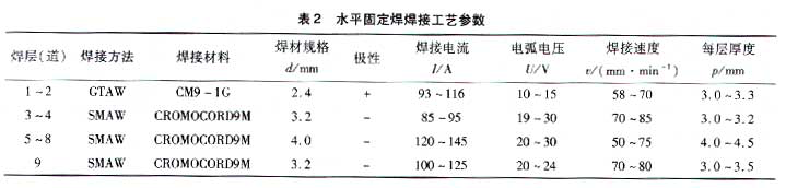 (4)由于P91鋼易出現冷裂紋和弧坑裂紋,因此焊接時應注意降弧坑填滿,可以采用逐漸減小電流或采用斷弧疊加法收弧。